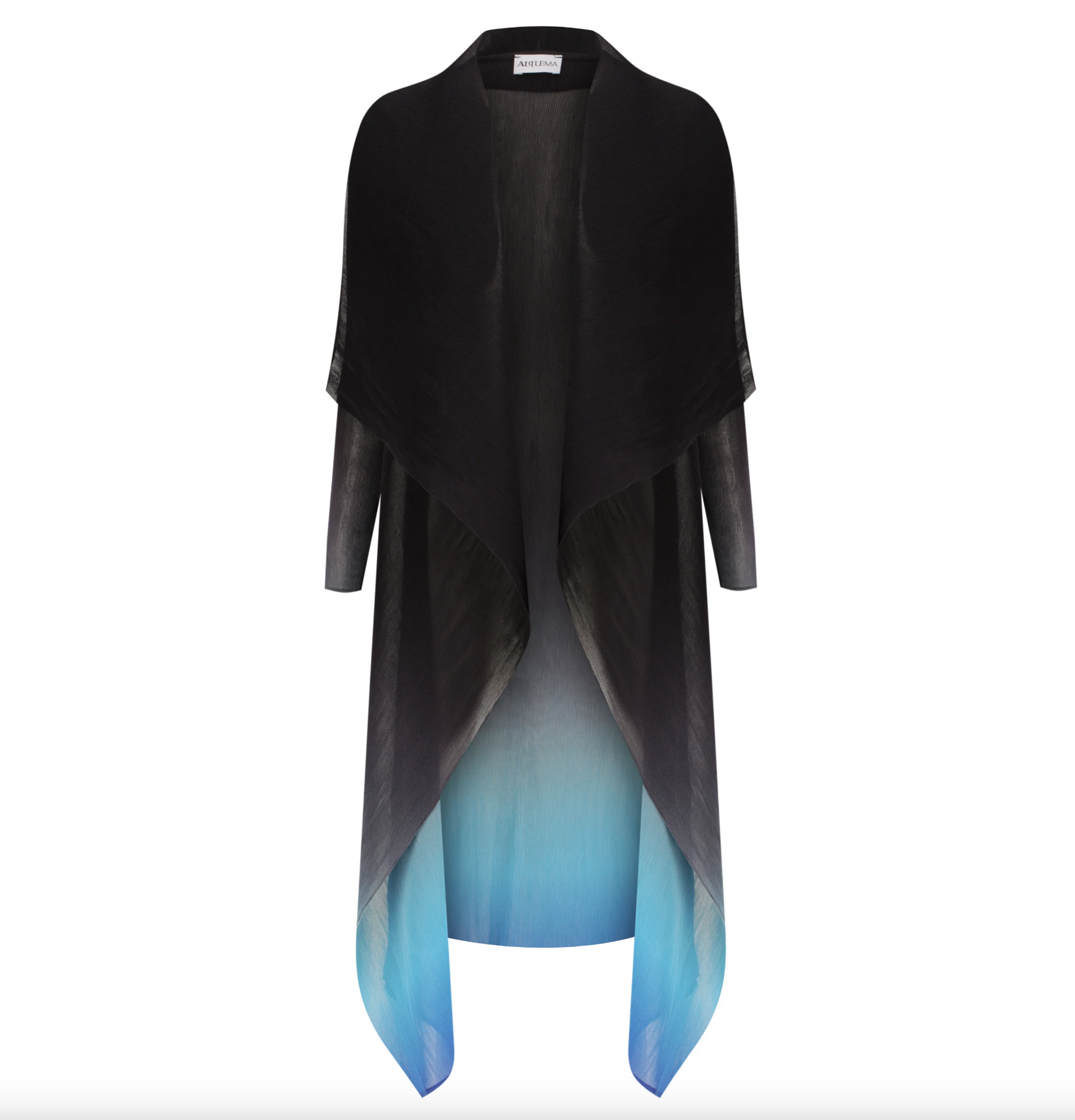 A signature Alquema silhouette, the Collare Coat in Ombre is a timeless expression of colour, movement, and craftsmanship. Crafted from 100% chiffon, this lightweight, slightly sheer layer features a cascading waterfall collar, long sleeves, and a midi-length hemline. The pleated design brings sculptural texture and graceful fluidity, while the ombré dye technique creates a seamless wash of shifting tones. Stylish yet versatile, it’s a striking companion to dresses or separates, perfect for layering with poise and ease.