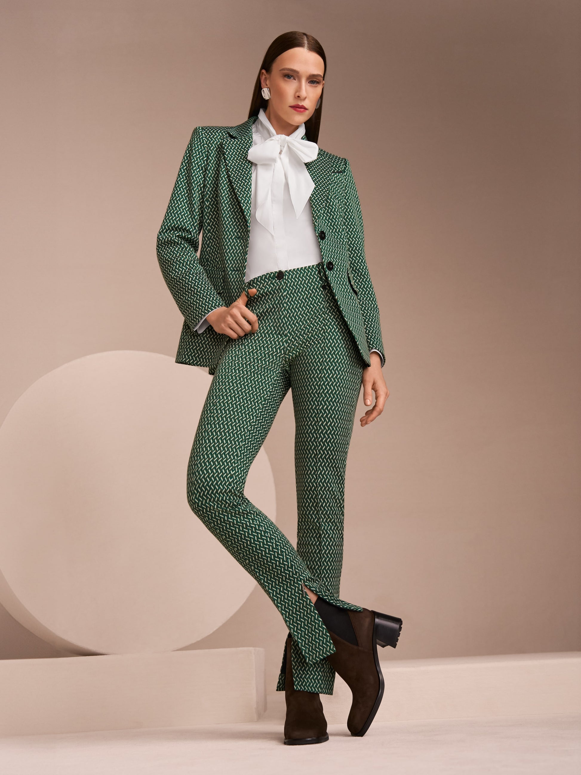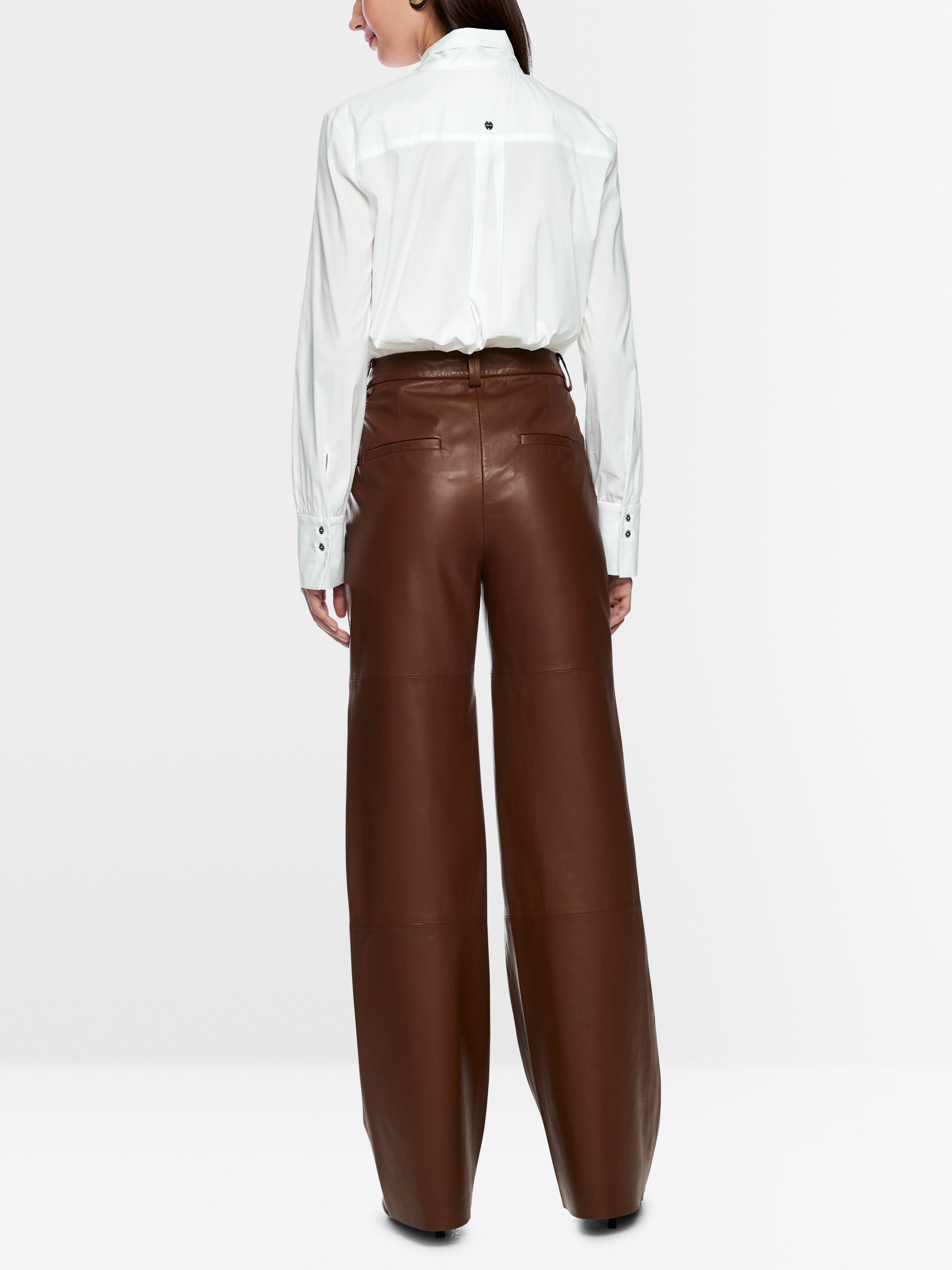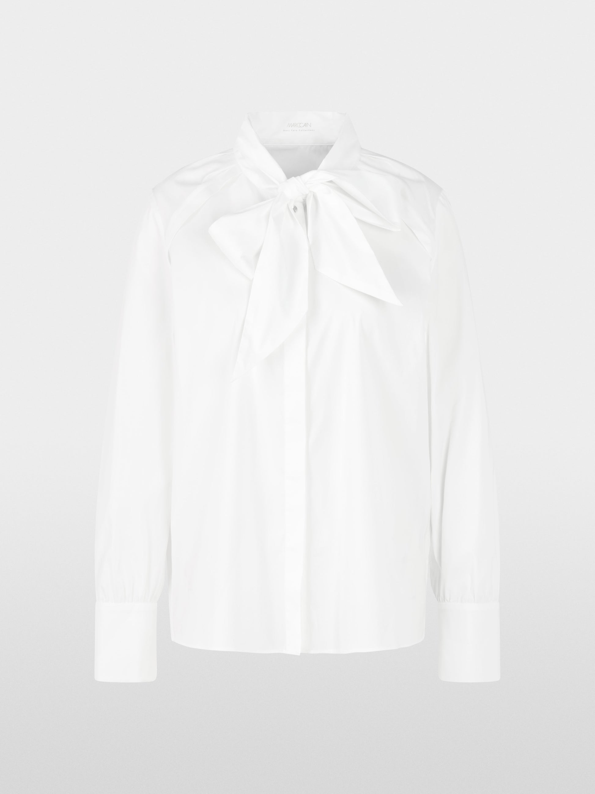 Elegant blouse in stretchy cotton with a large bow and concealed buttoning. Its loose cut, slightly dropped shoulders and wide 2-button cuffs create a modern, feminine silhouette. Ideal for stylish business and everyday looks.