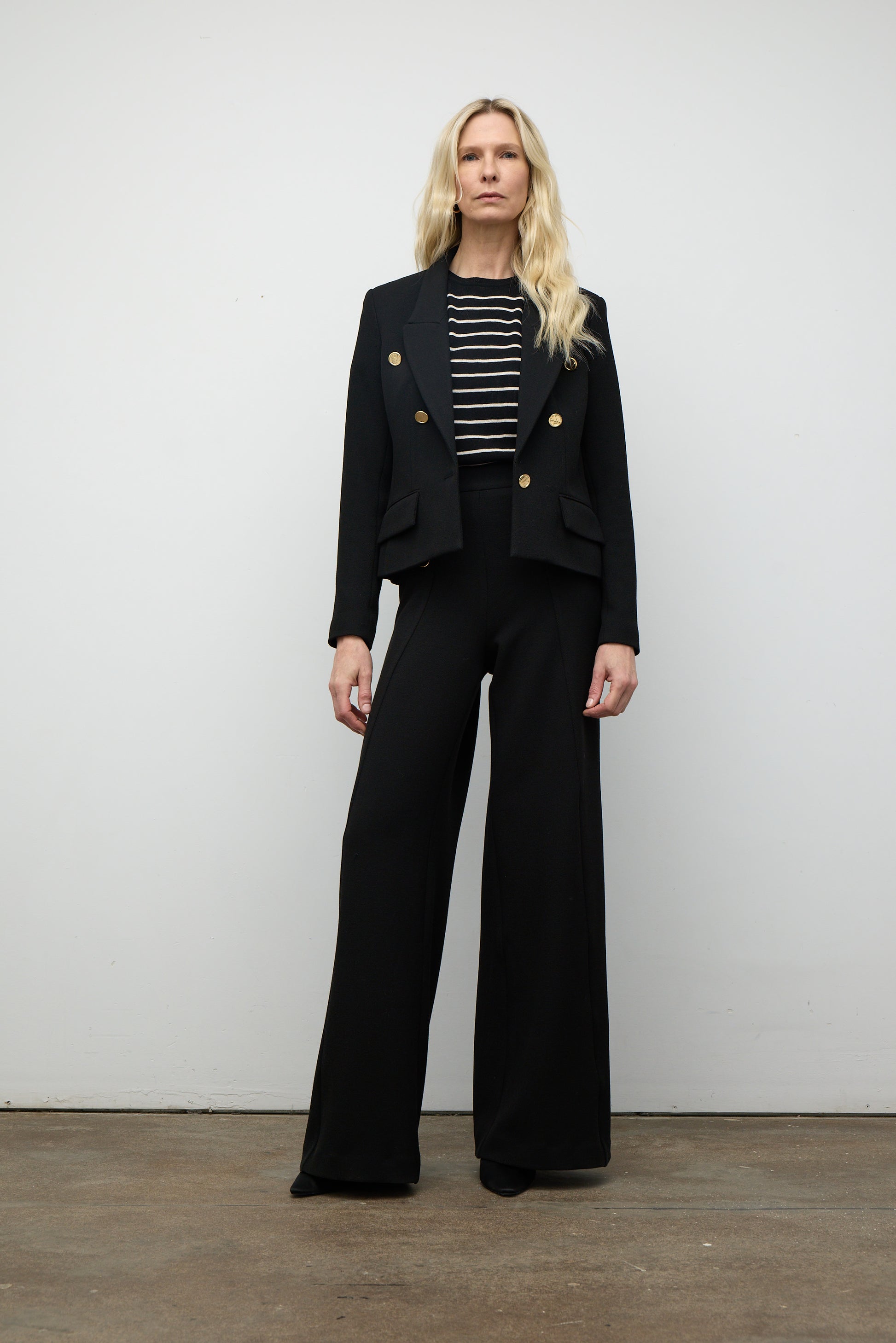 Fine Merino Blend Striped T-Shirt - Black/Bone