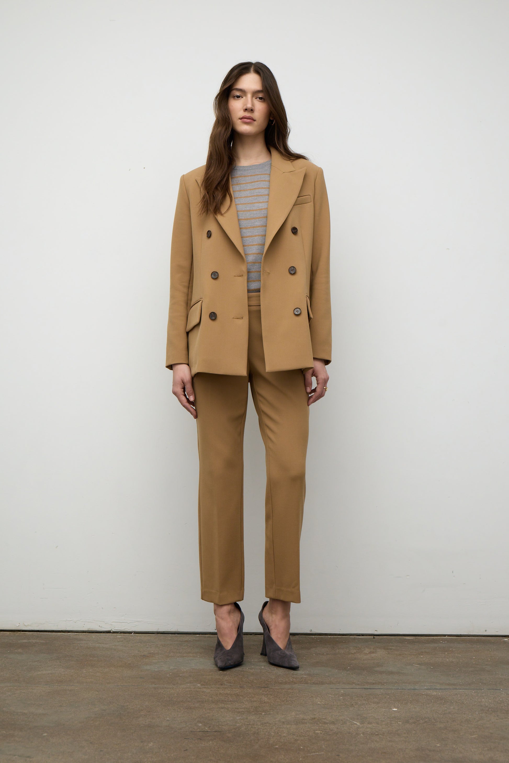 Fine Merino Blend Striped T-Shirt - Mid Grey/Camel