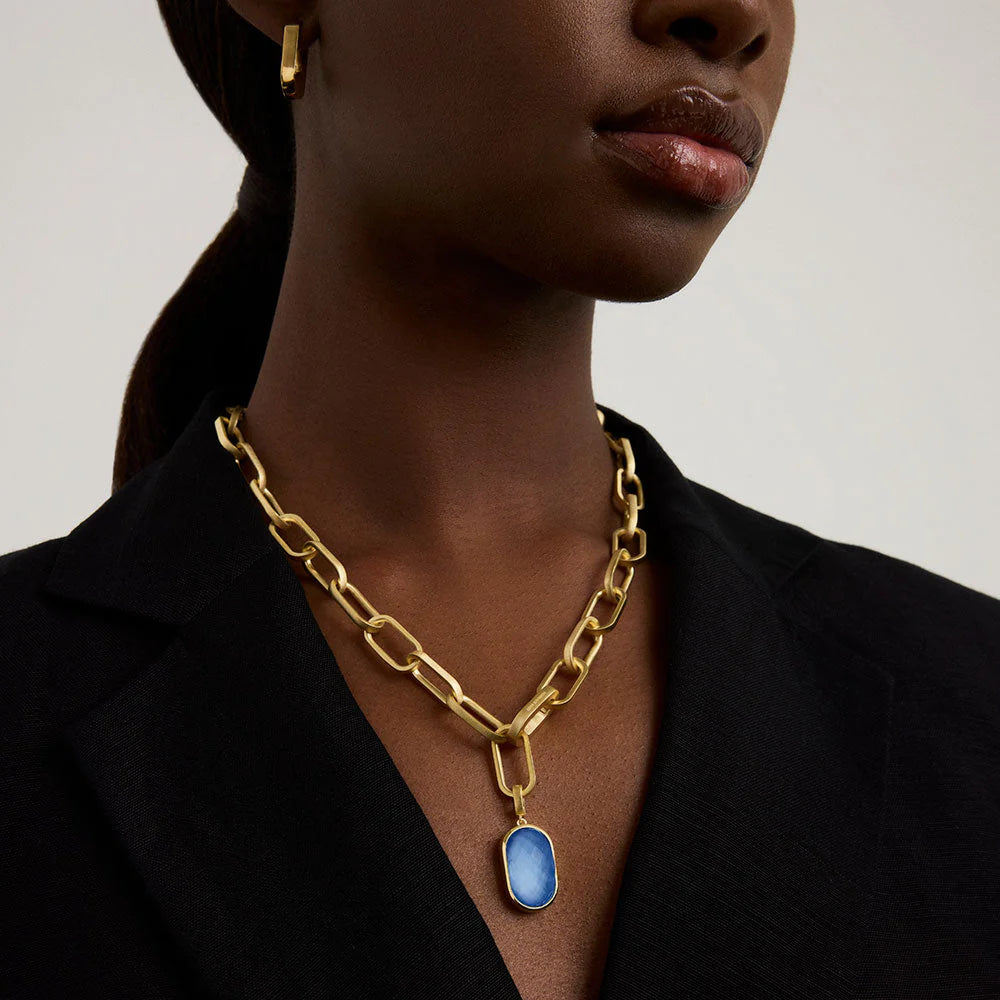 Crafted with light-catching links and a single Celestial Blue Stone, this collar-style necklace is destined to become a staple in your accessory arsenal.