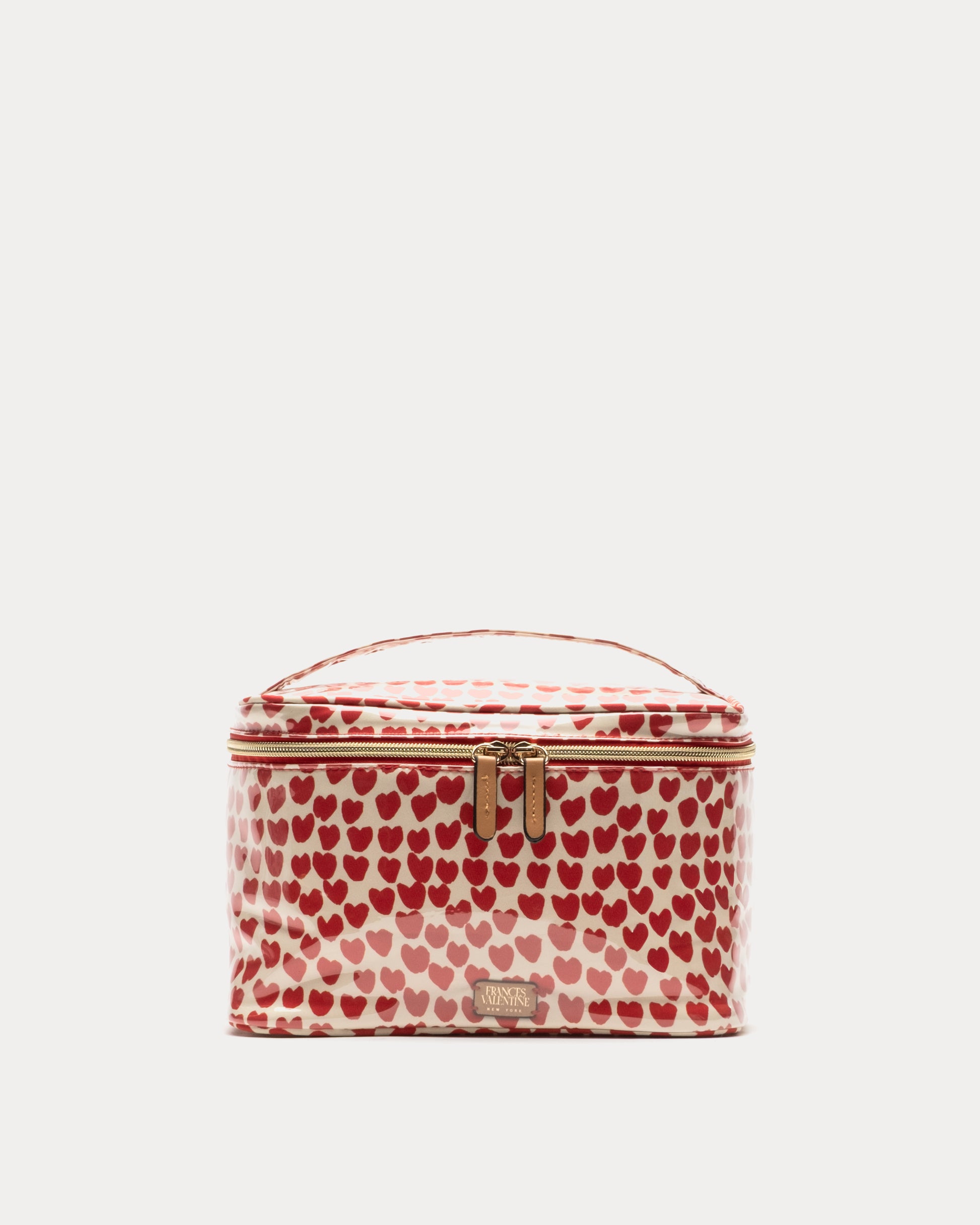 Train Case Cosmetic - Baby Hearts Oyster/Red