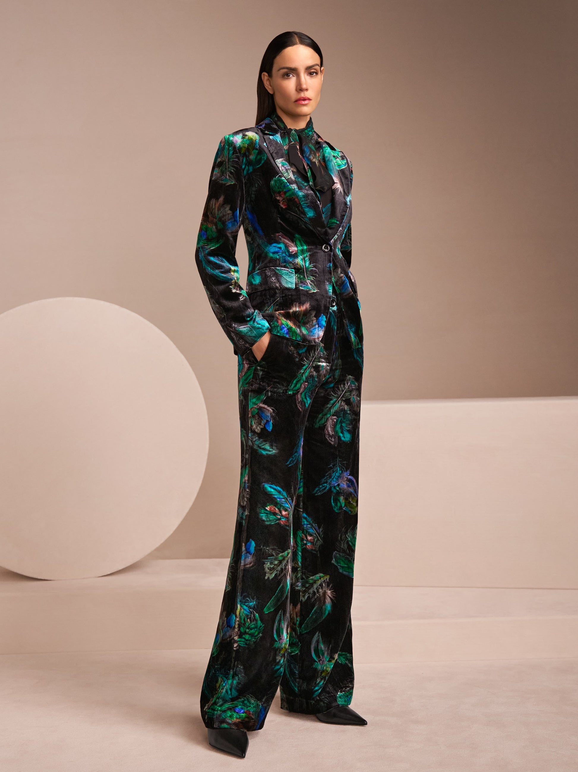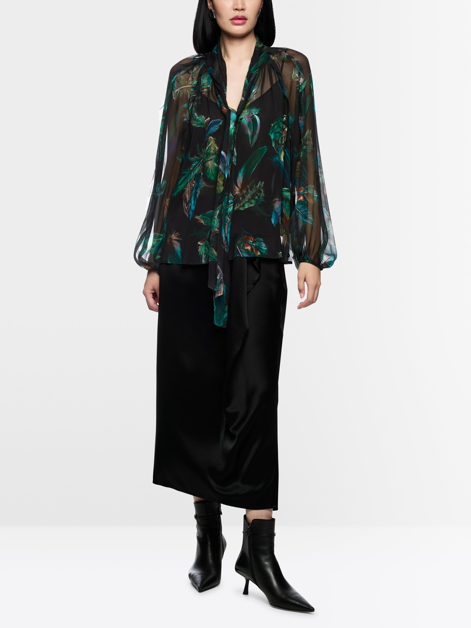 Airy, transparent viscose blouse with an elegant feather print, and with a loose fit for maximum comfort. Includes a detachable top as a bottom piece. The bow ribbon adds a feminine touch, while narrow elasticated cuffs ensure a perfect fit.
