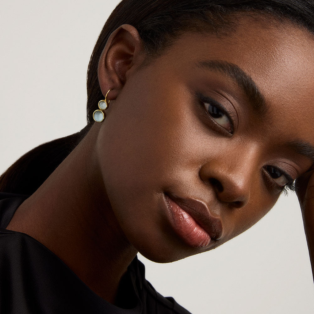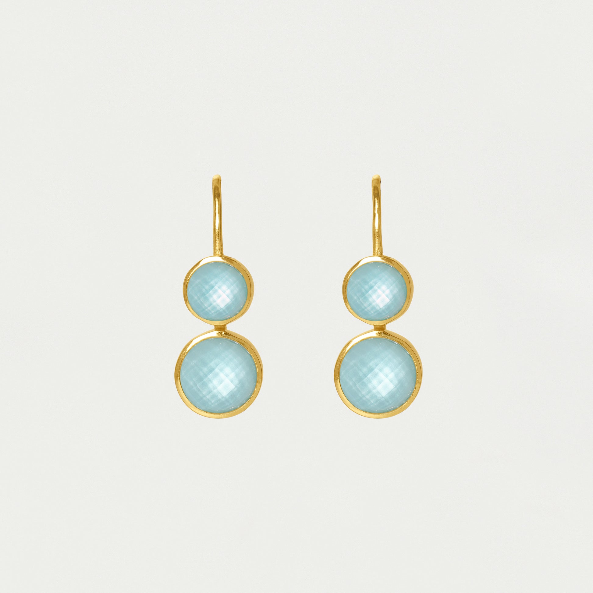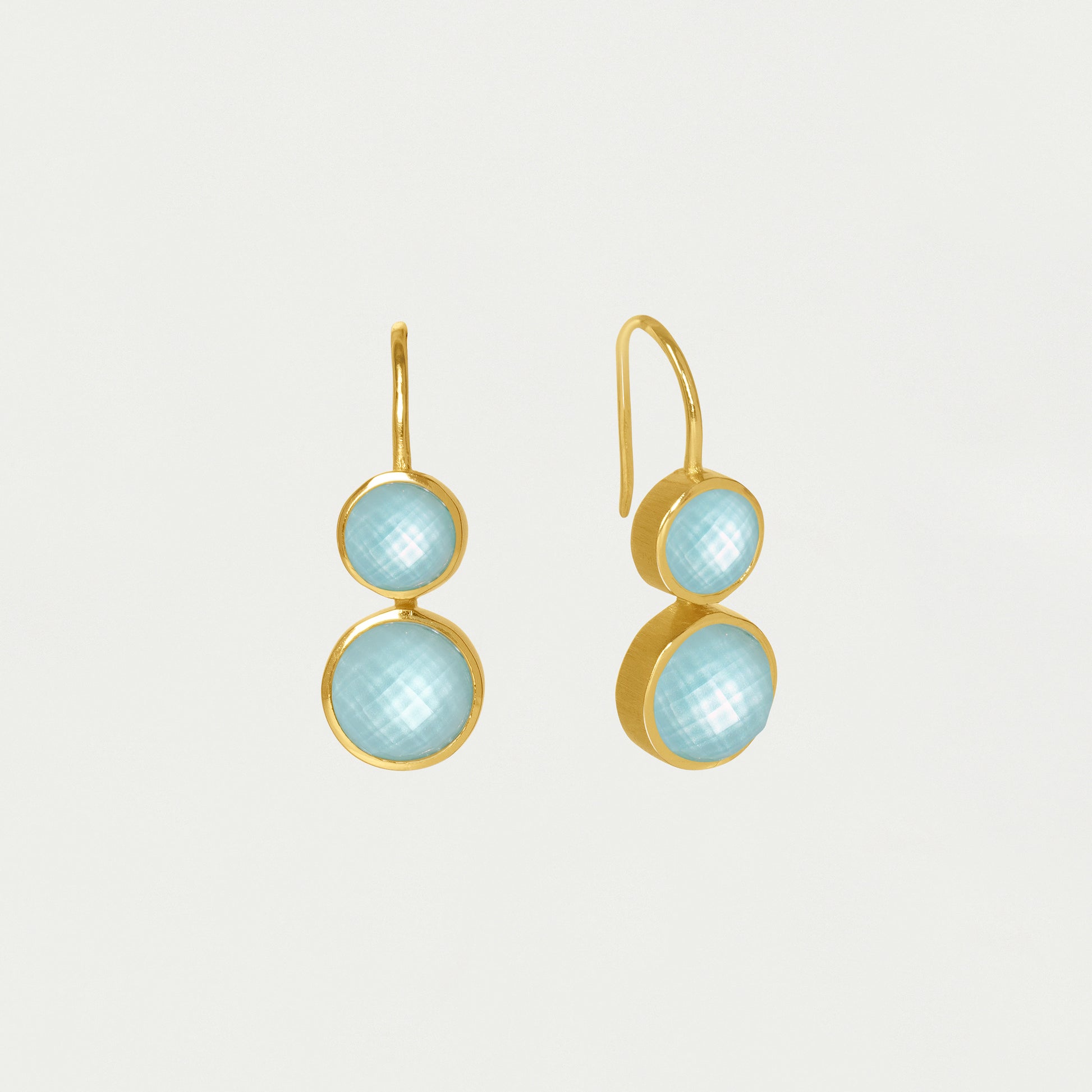 Tulum Double Droplet Earrings - Iridescent Sky Blue/Gold